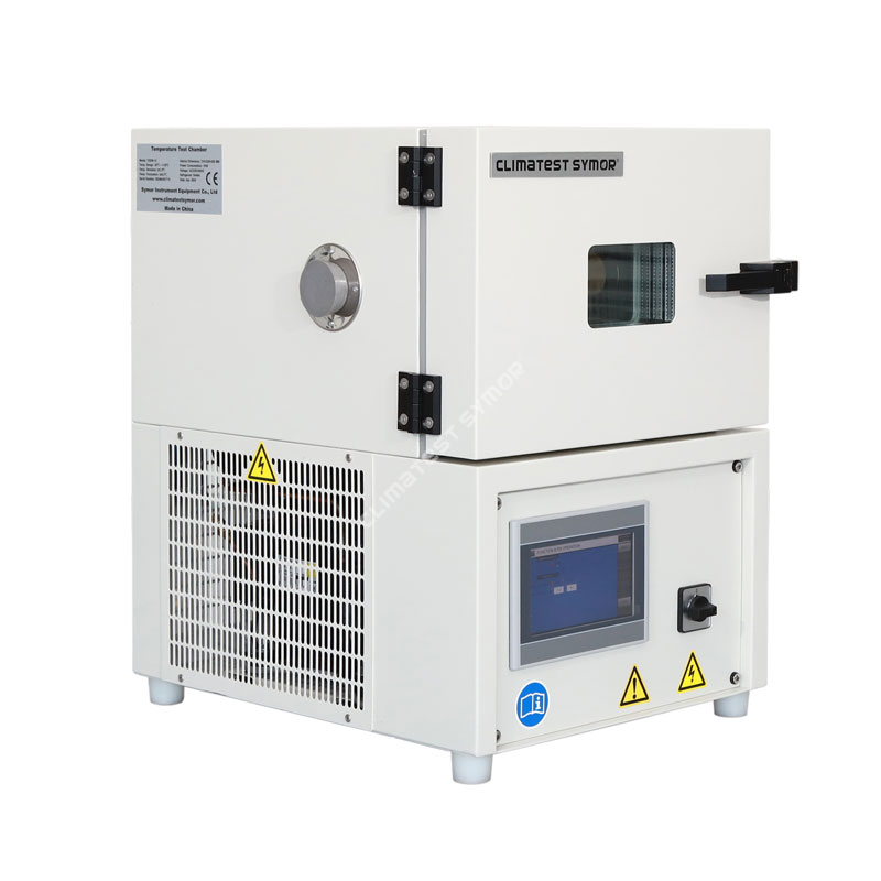Climatest Symor® fabrique des chambres d'essais environnementaux de paillasse en Chine. La chambre d'essai environnemental de paillasse est conçue sur mesure pour les petits échantillons dans un laboratoire à espace limité, et elle offre les conditions idéales pour tester les performances des échantillons contre les changements de température très-basses et fournit une solution de test optimale avec un volume compact de 12 L, 22 L, et 36L. Il allie une grande durabilité à d’excellentes performances de travail. La chambre d'essai de température de paillasse est devenue le best-seller dans les laboratoires et les instituts de recherche.